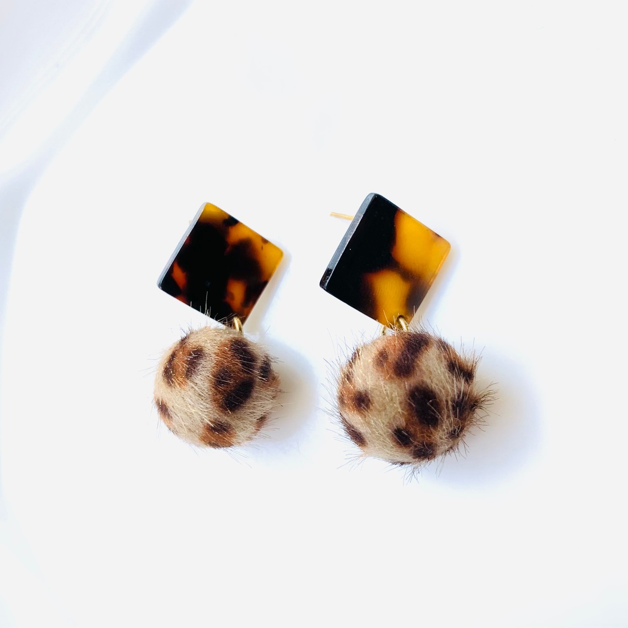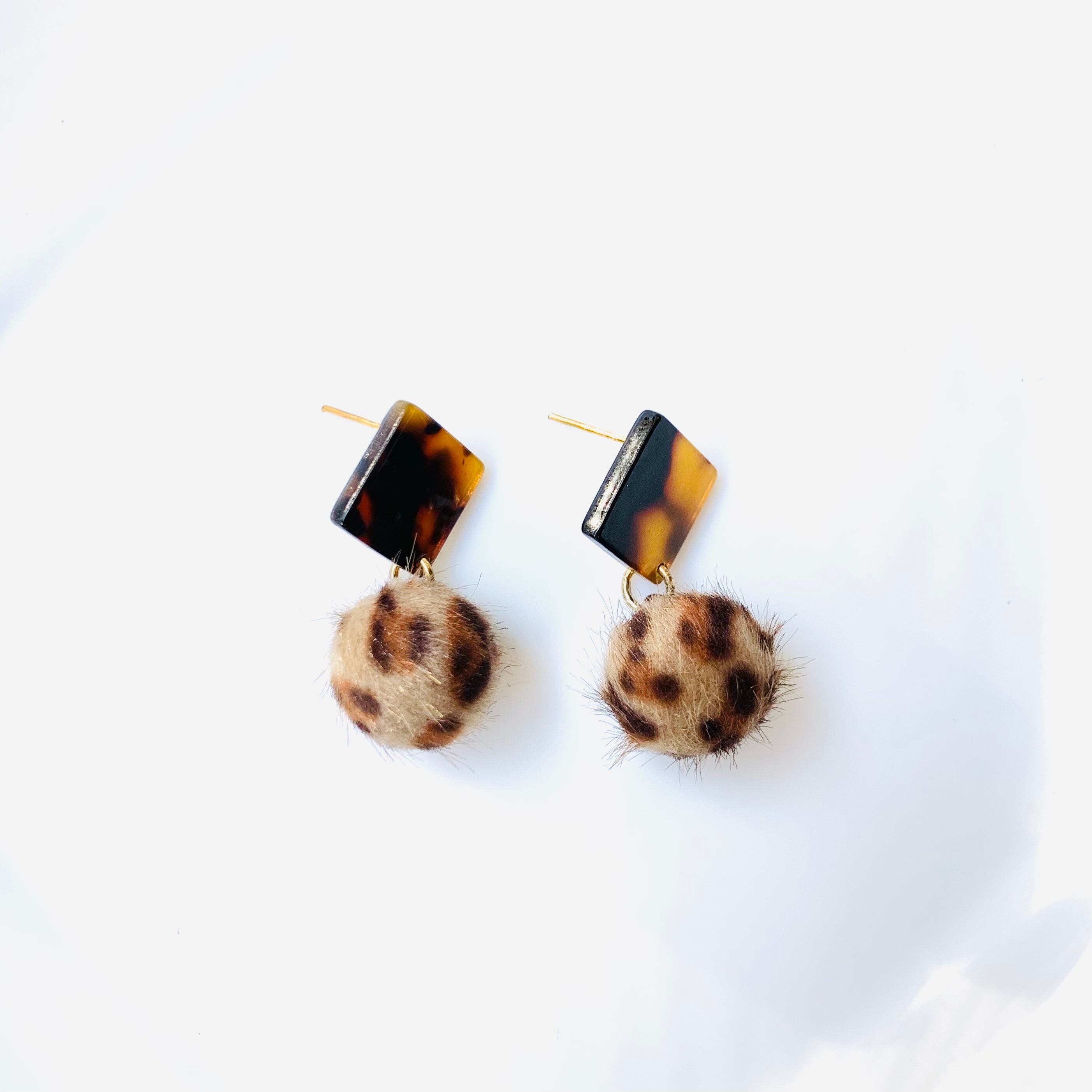 秋らしいべっこうスクエアに、まん丸のファーボールを合わせました。