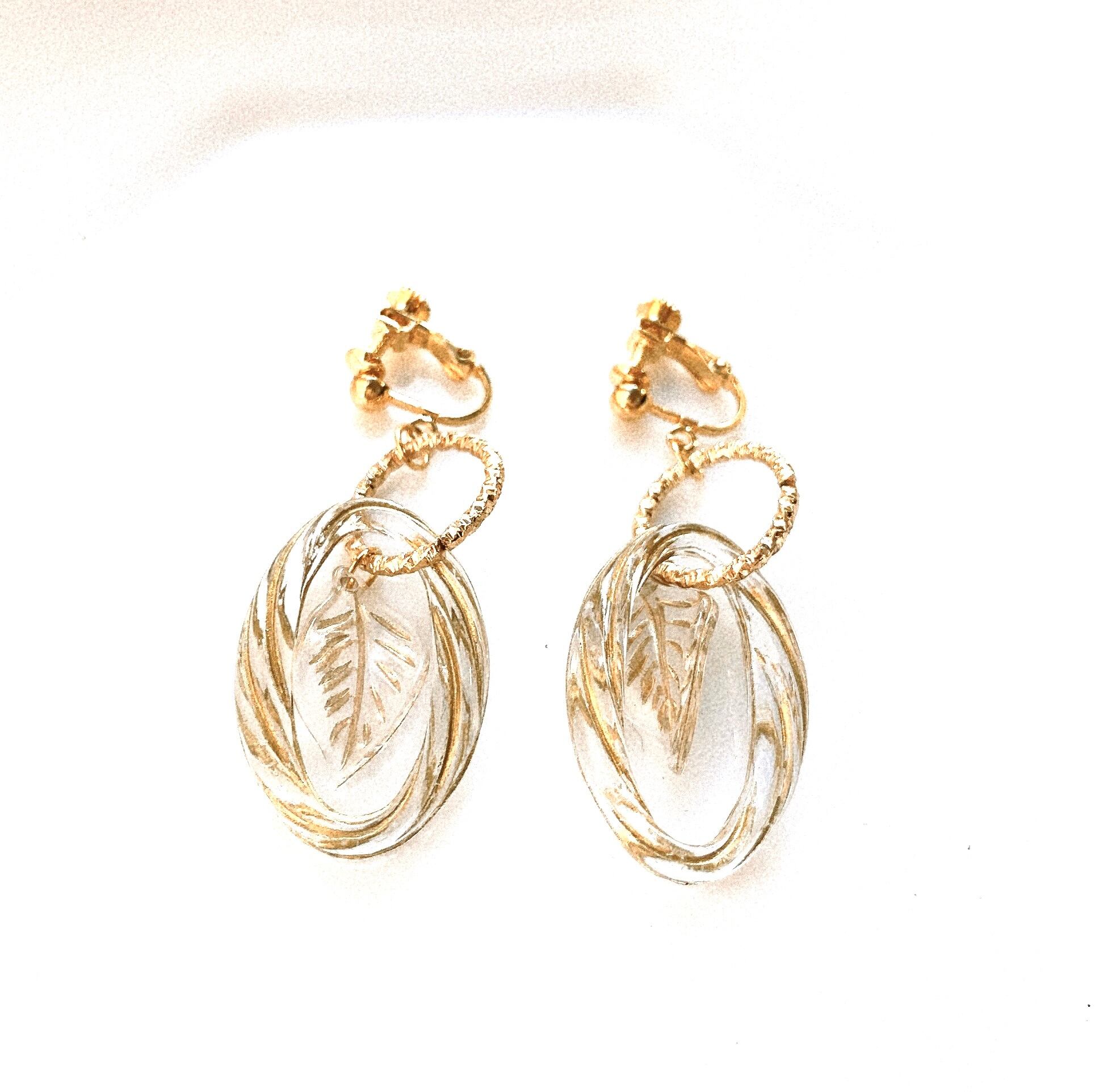 ゴールドの楕円パーツの中にリーフパーツをおさめました。