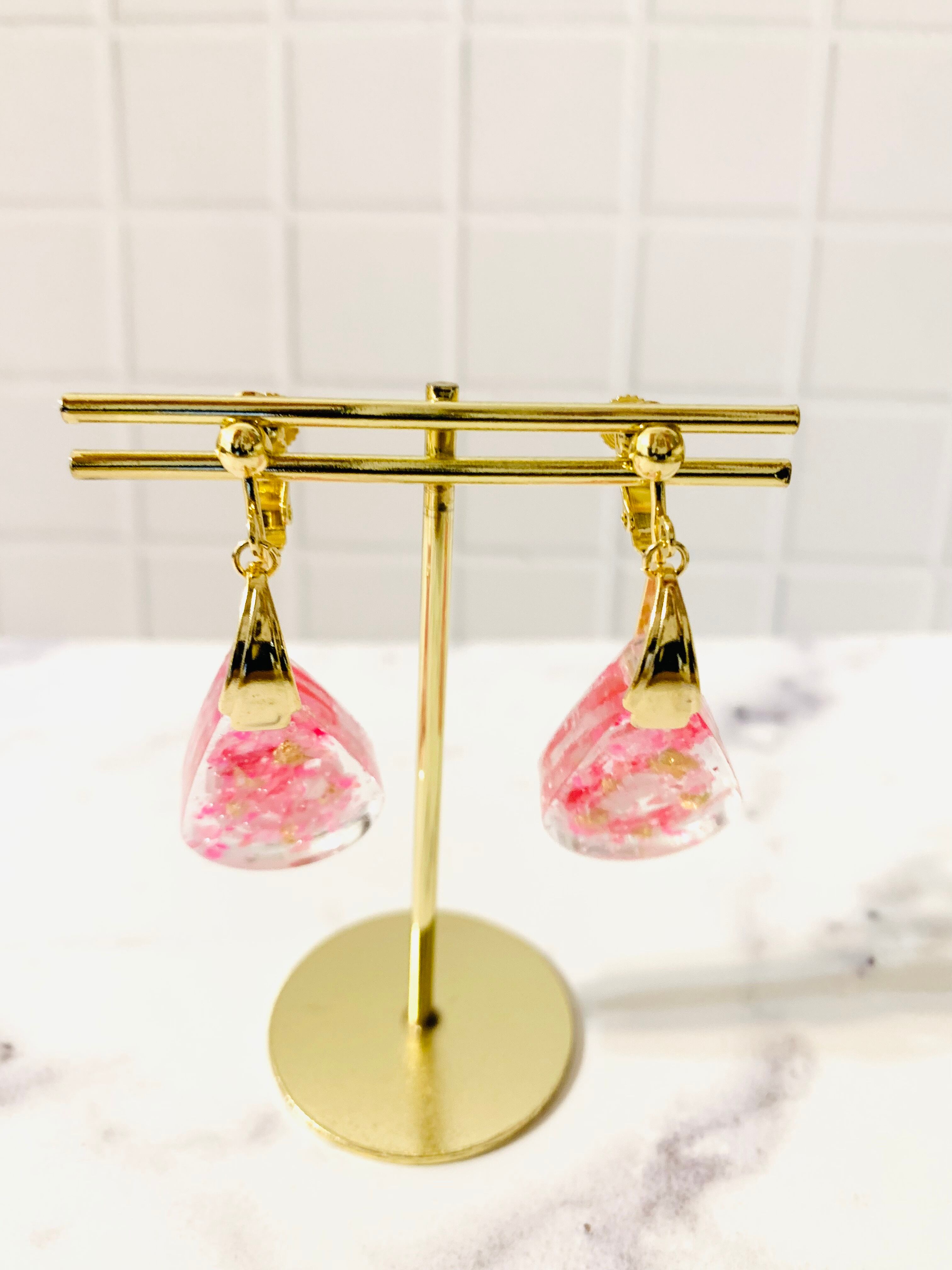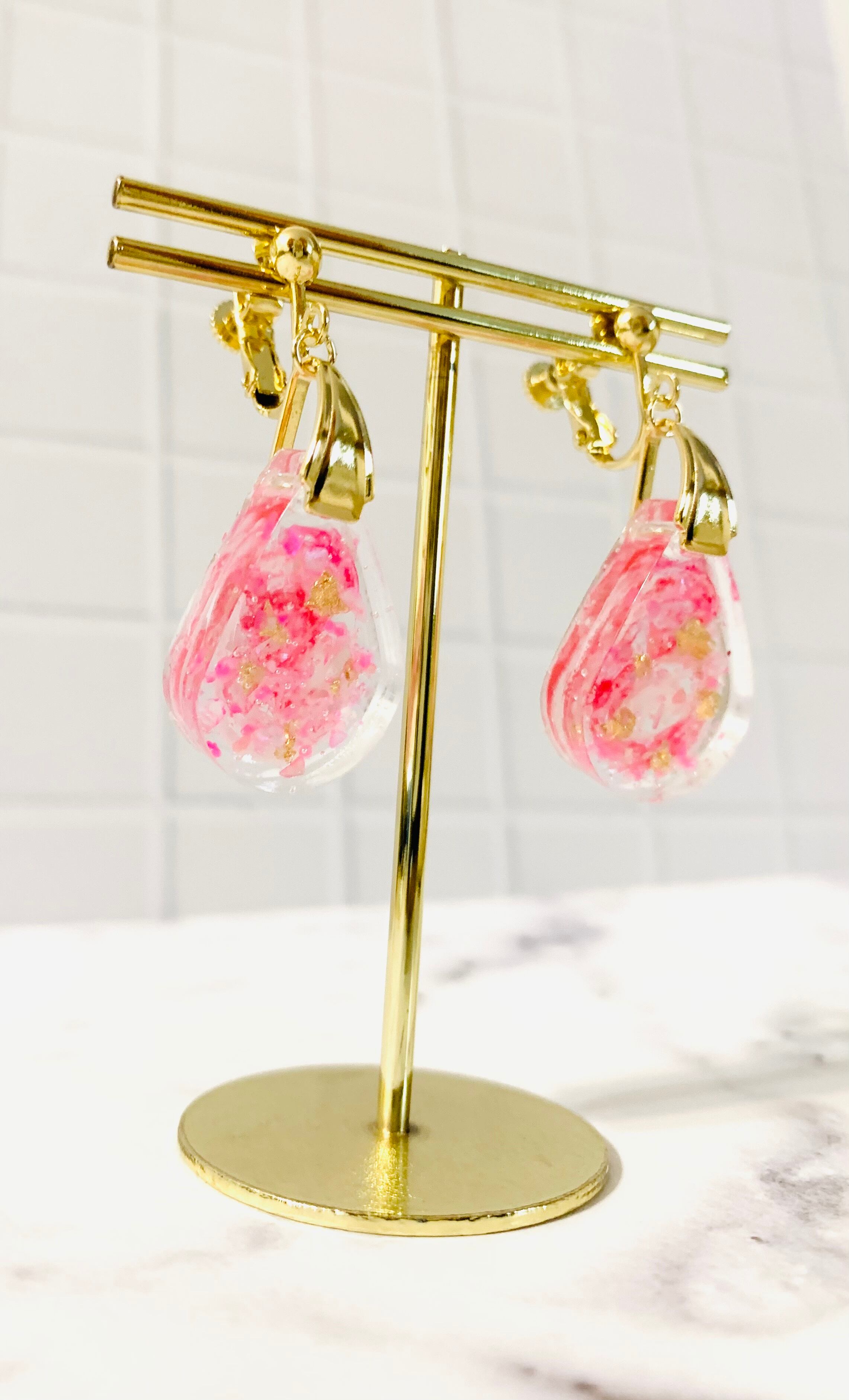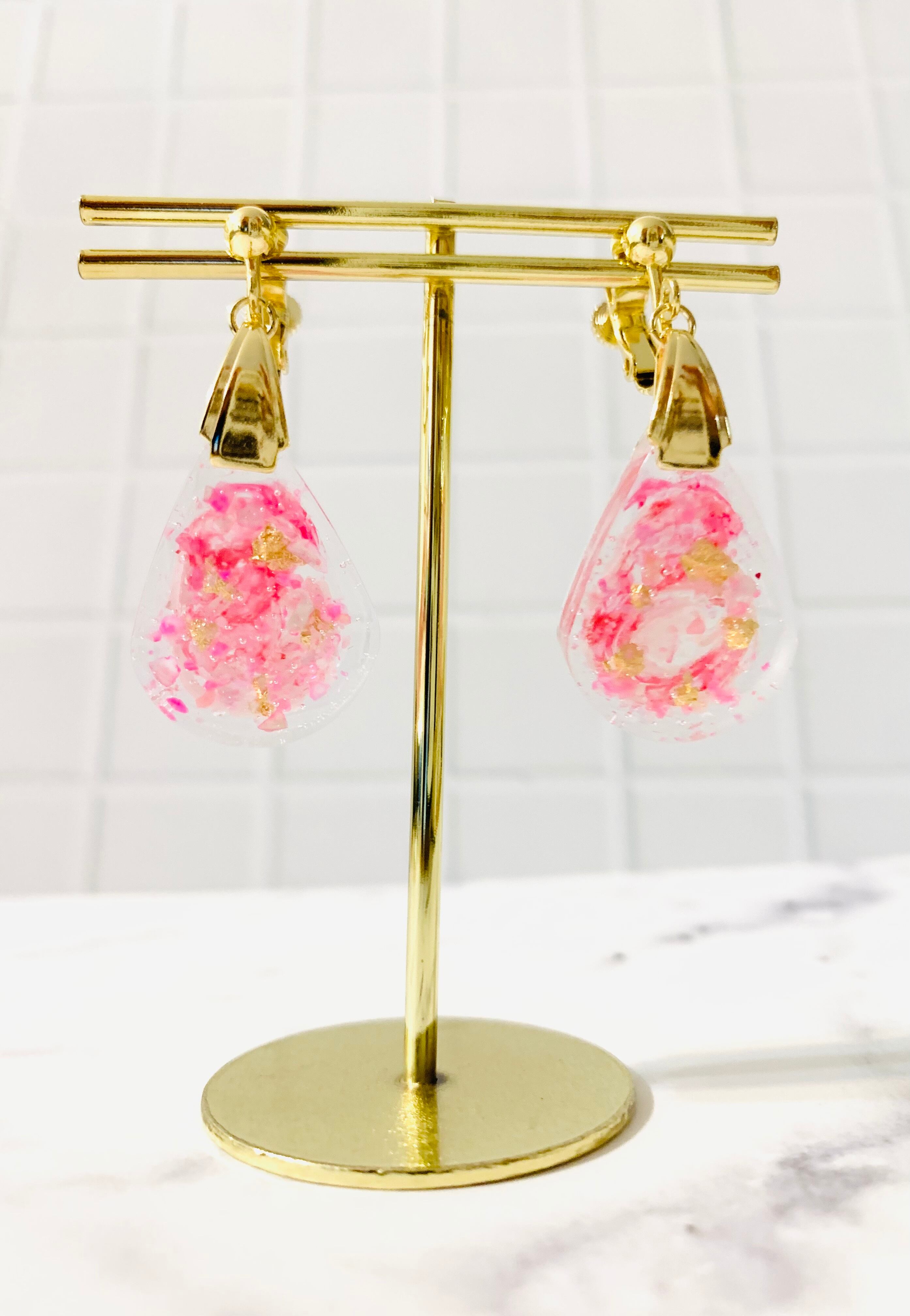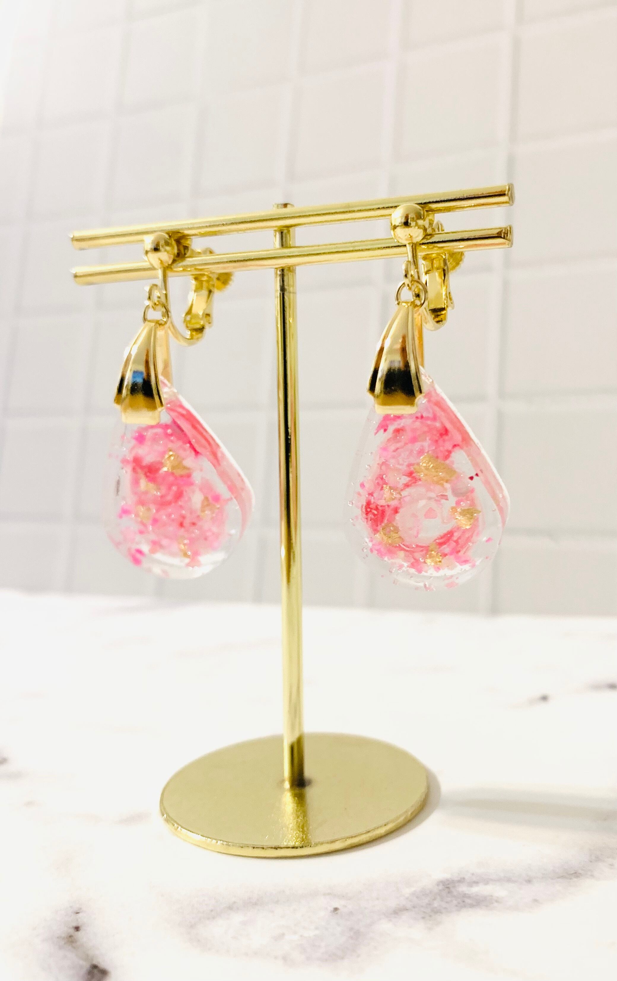 ピンクとホワイトのマーブル模様に金箔を入れて、ゴールドの金具と合わせました。