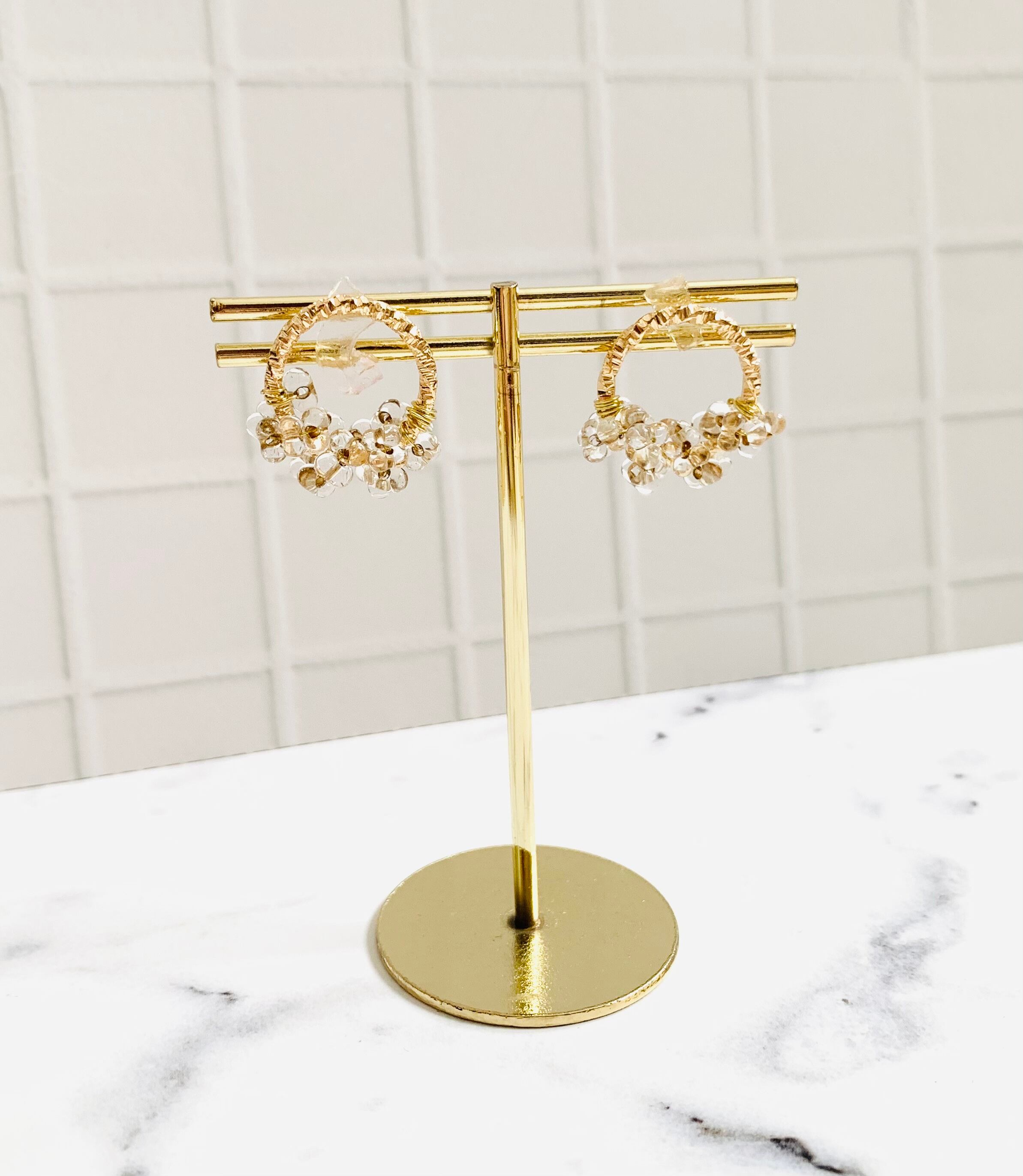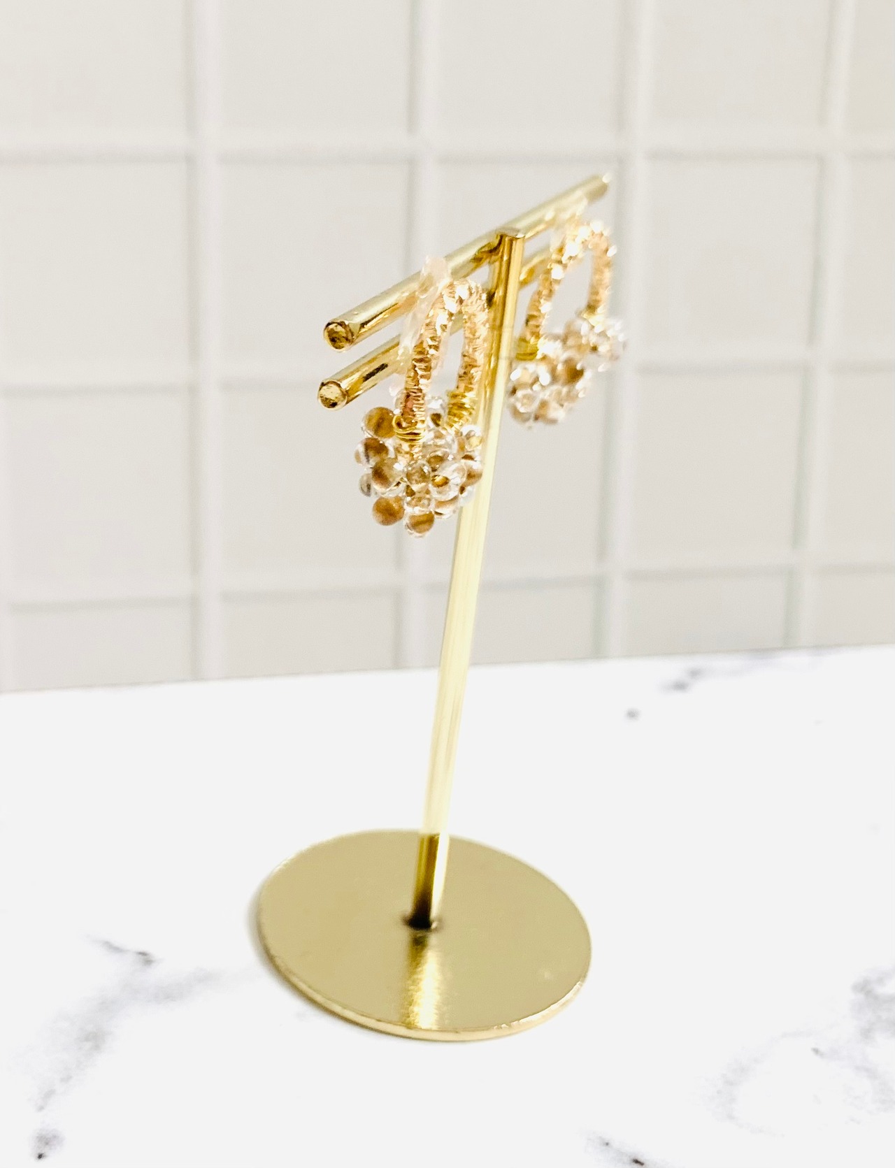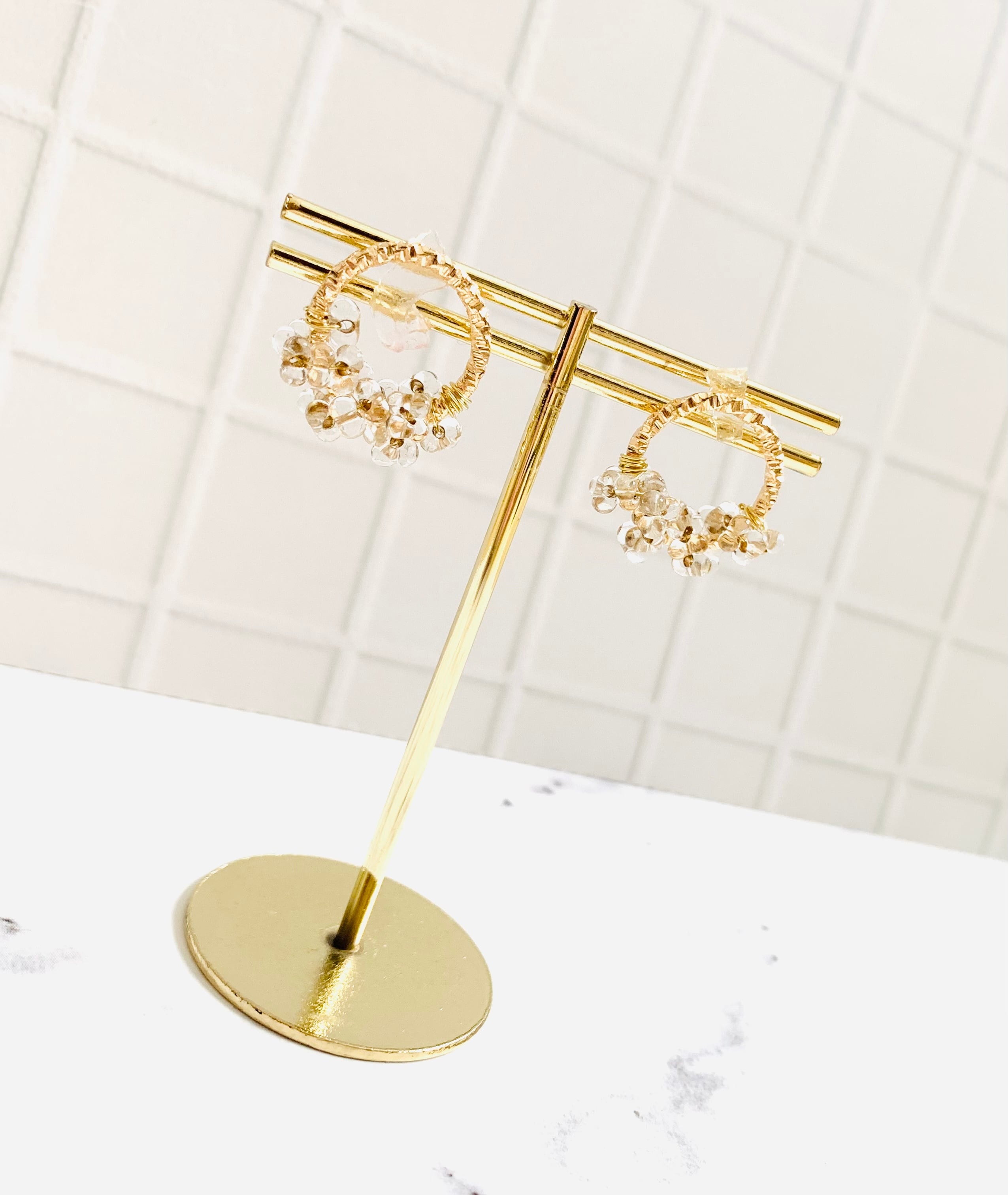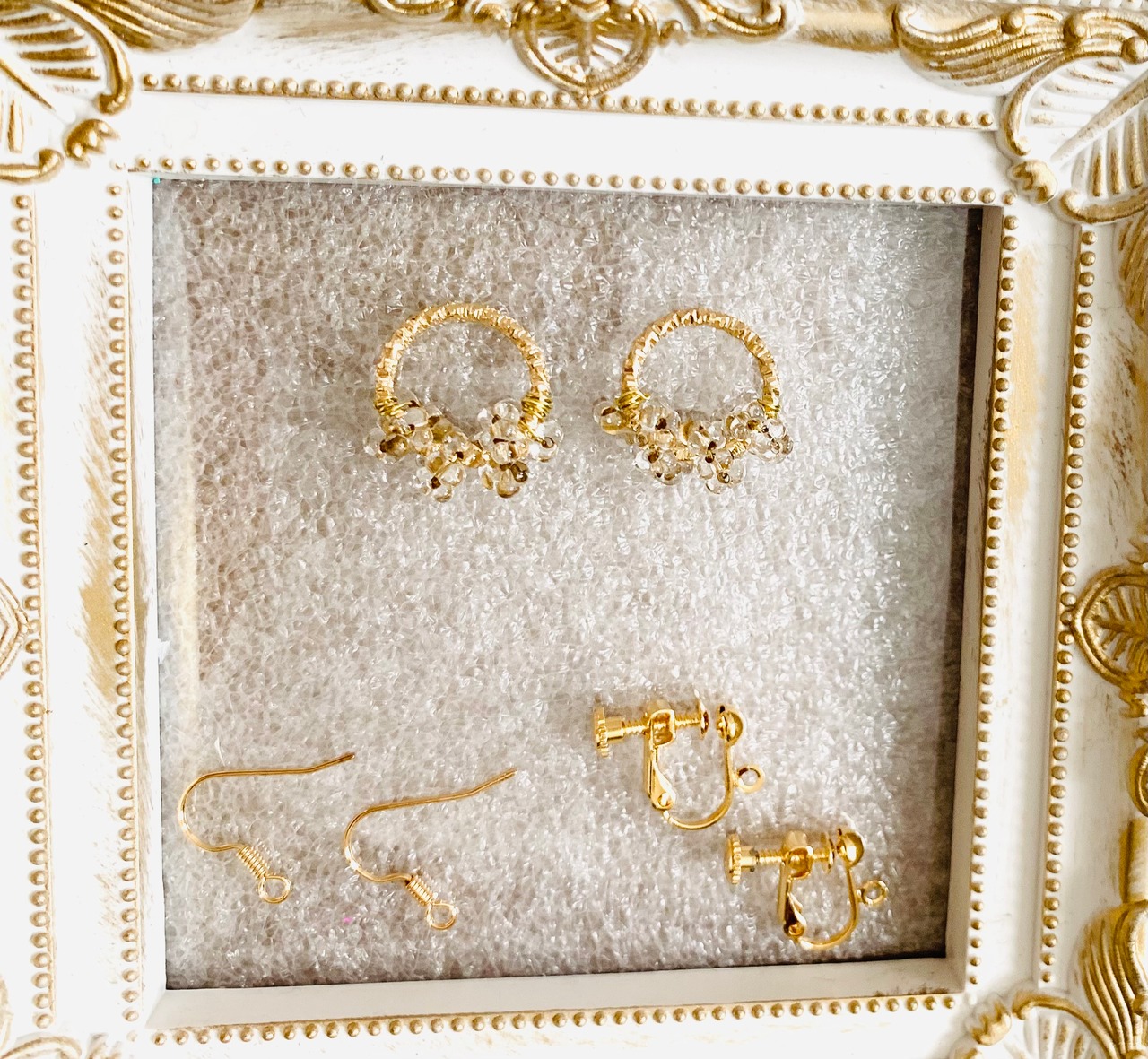 デザインが入ったゴールドフープにチェコビーズをたくさん編み込みました。