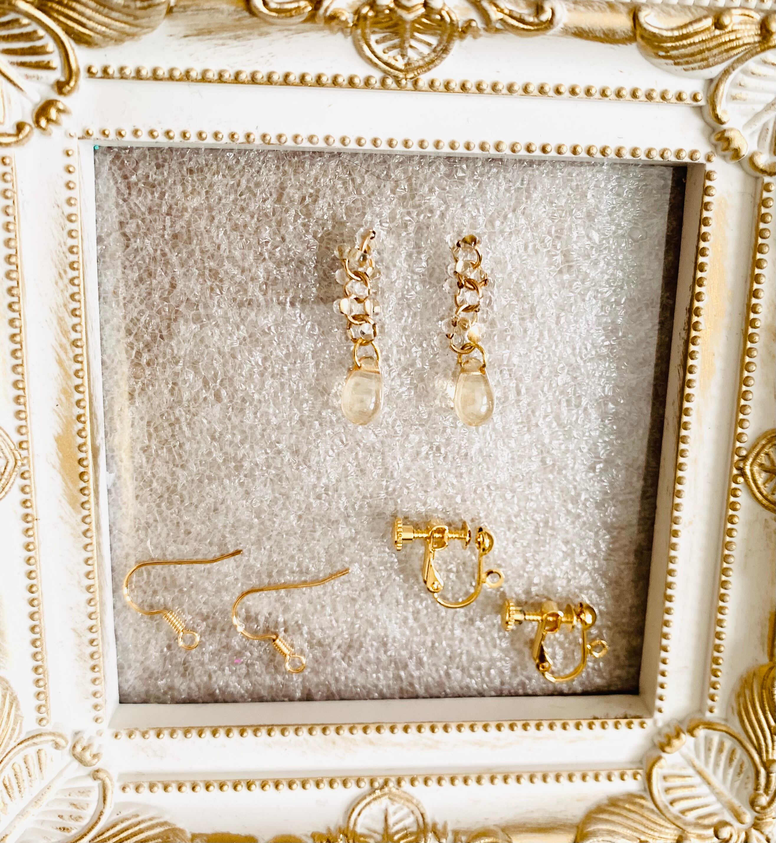 ご注文時にイヤリング、ピアス、チタンピアスをお選びいただけます。