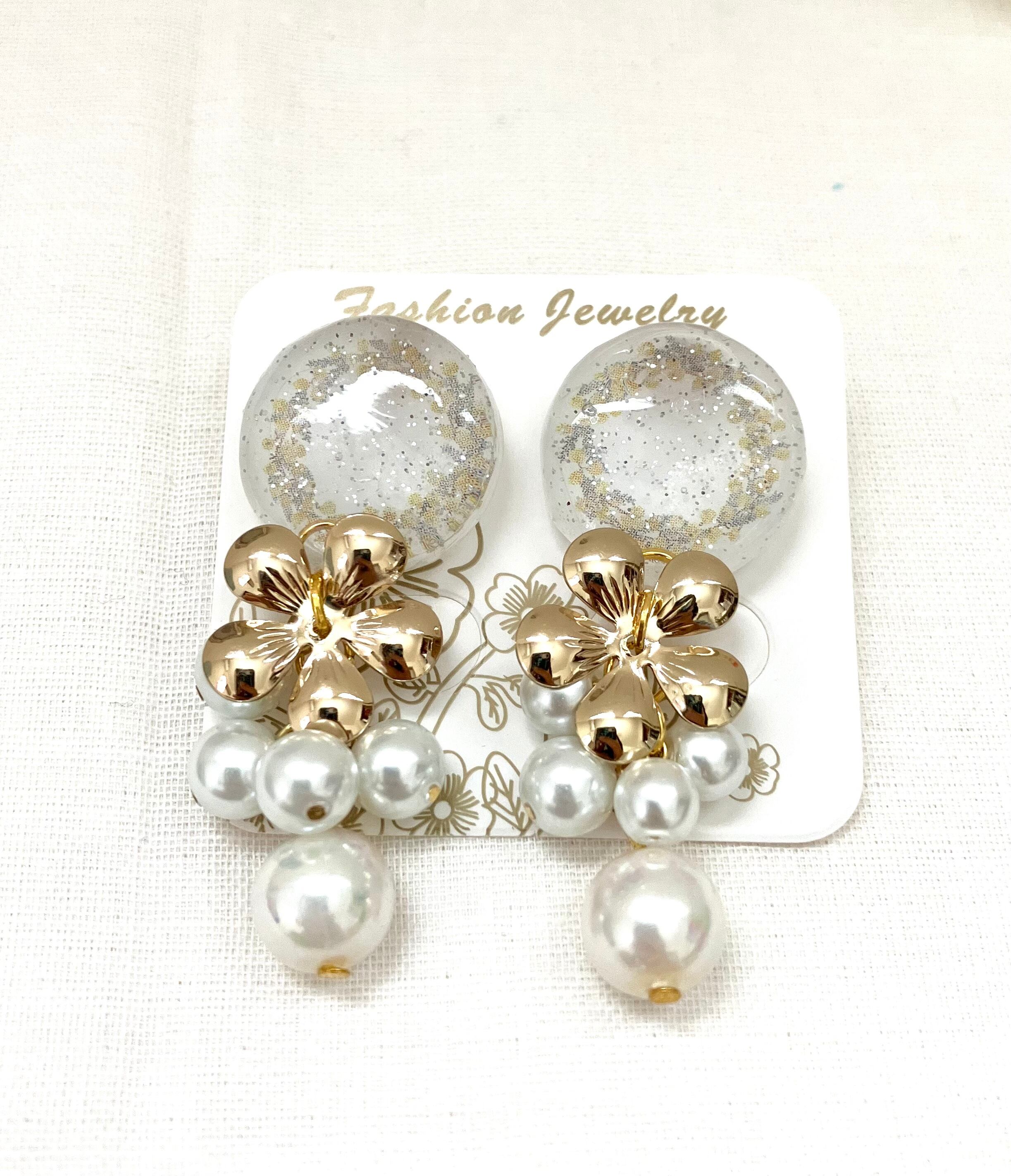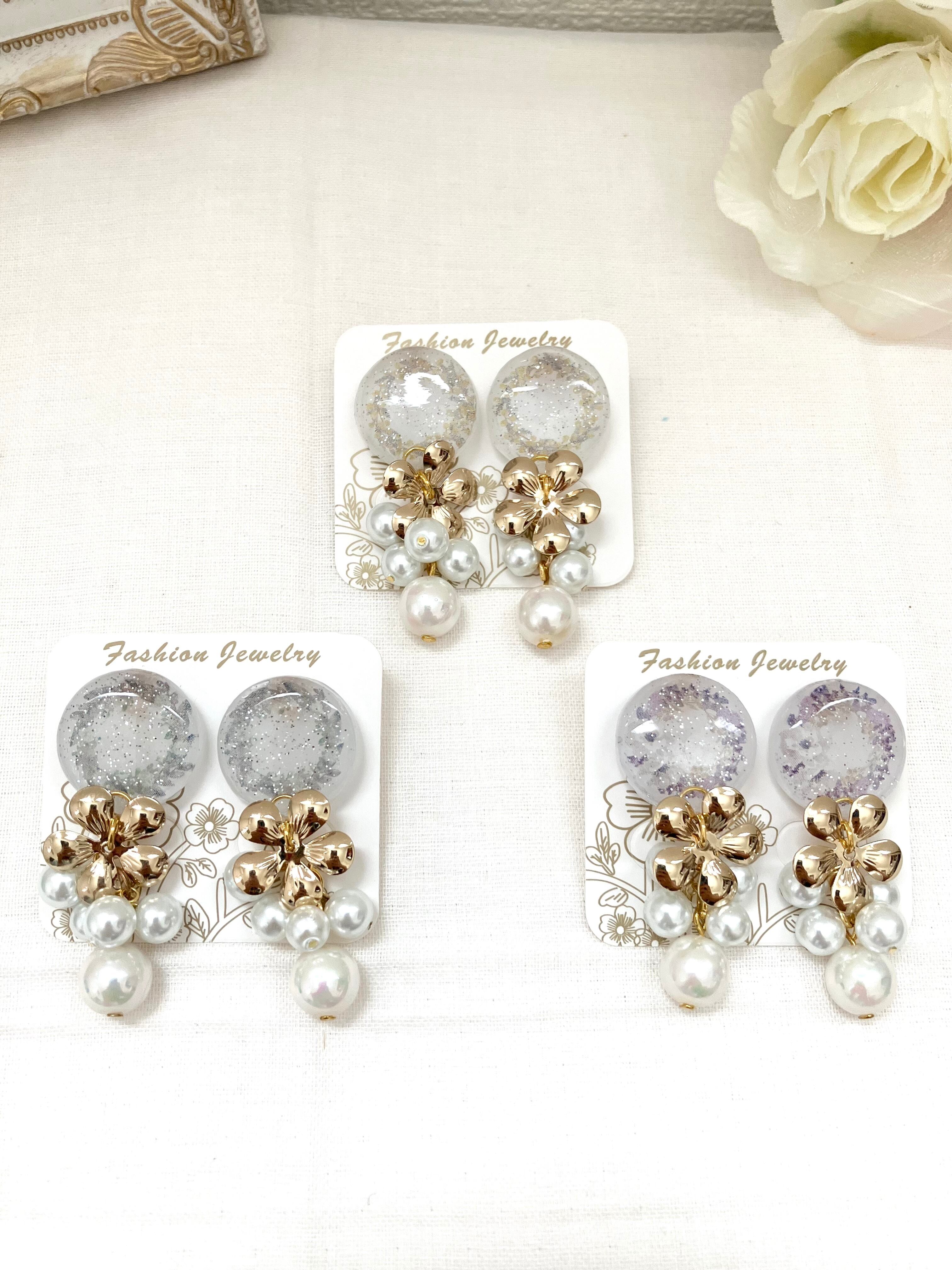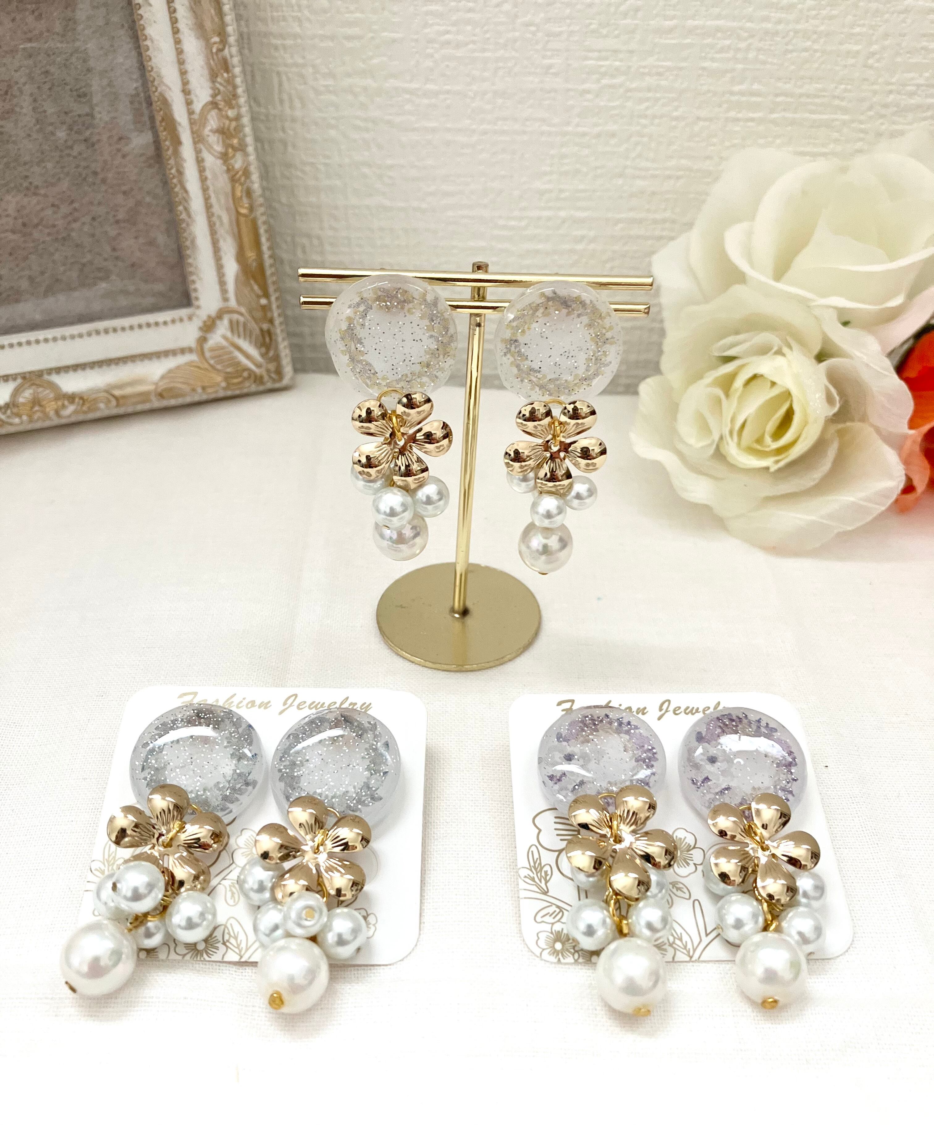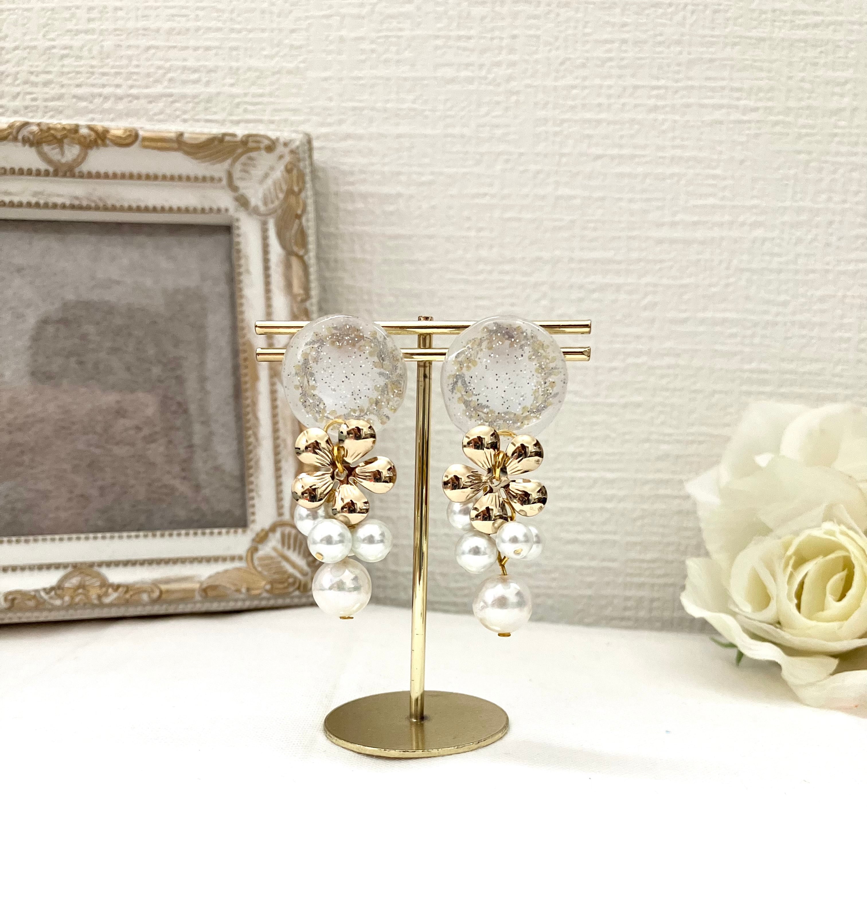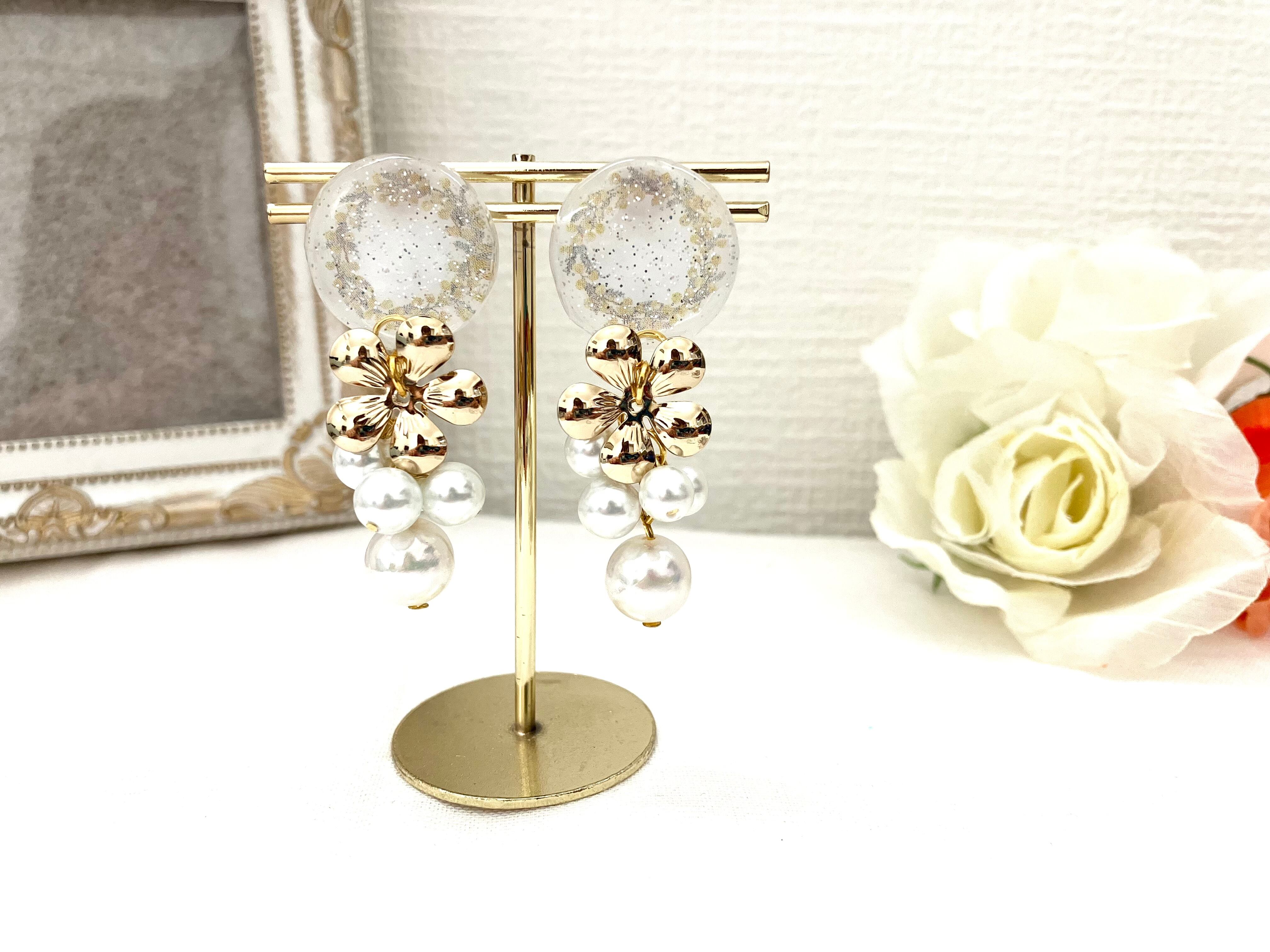 ゴールドのお花とシャラシャラパールを合わせて上品に仕上げました。