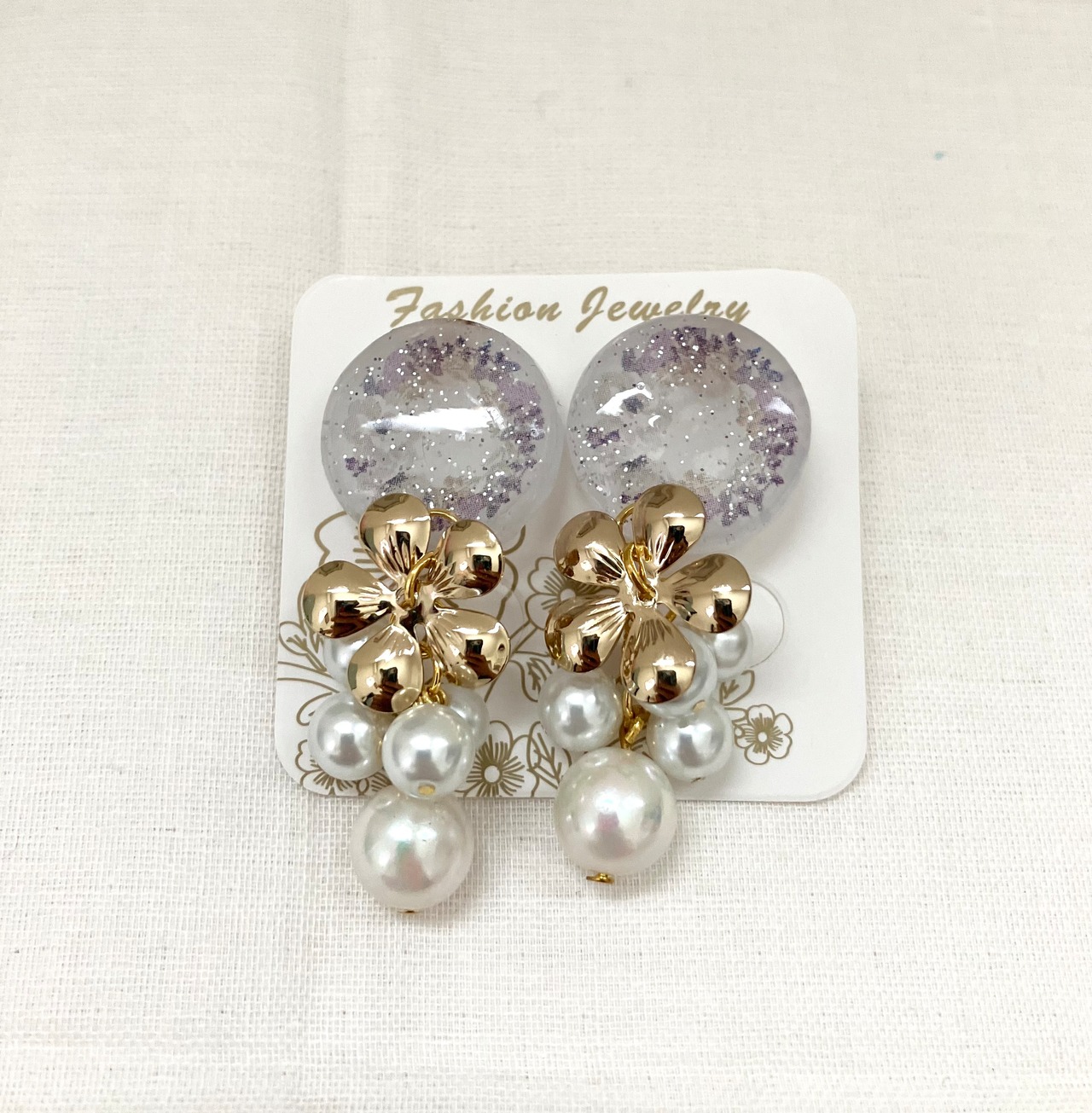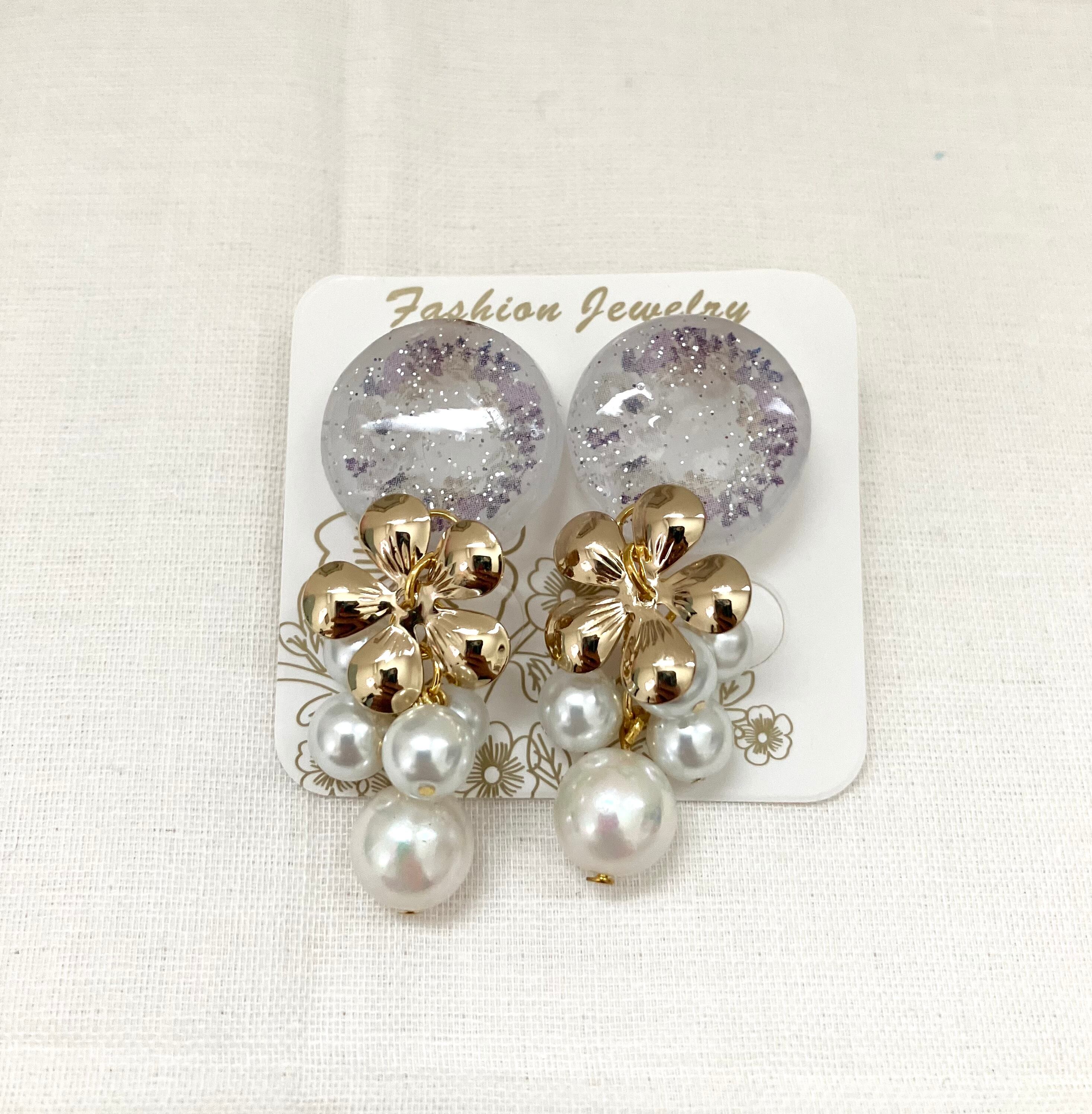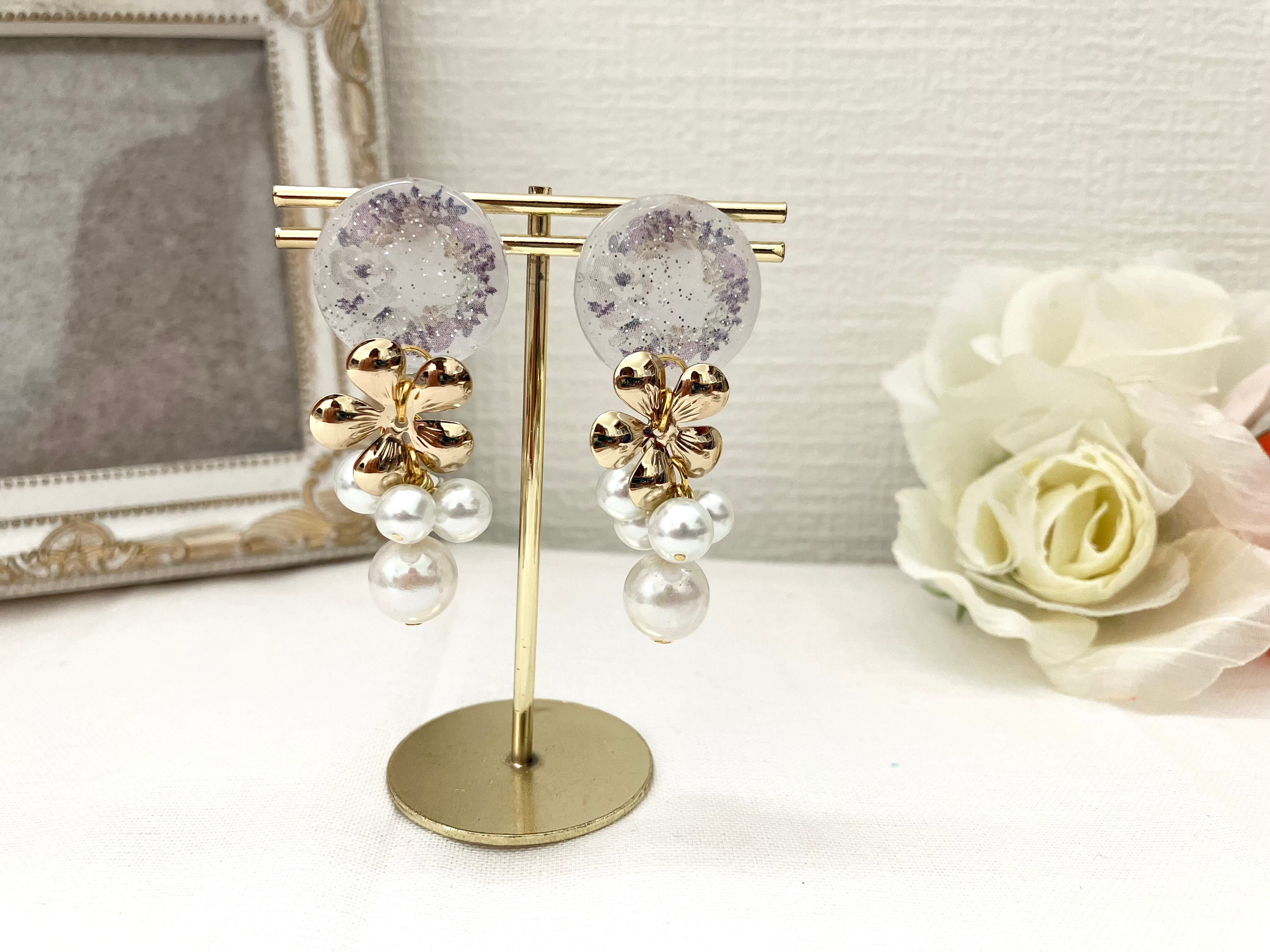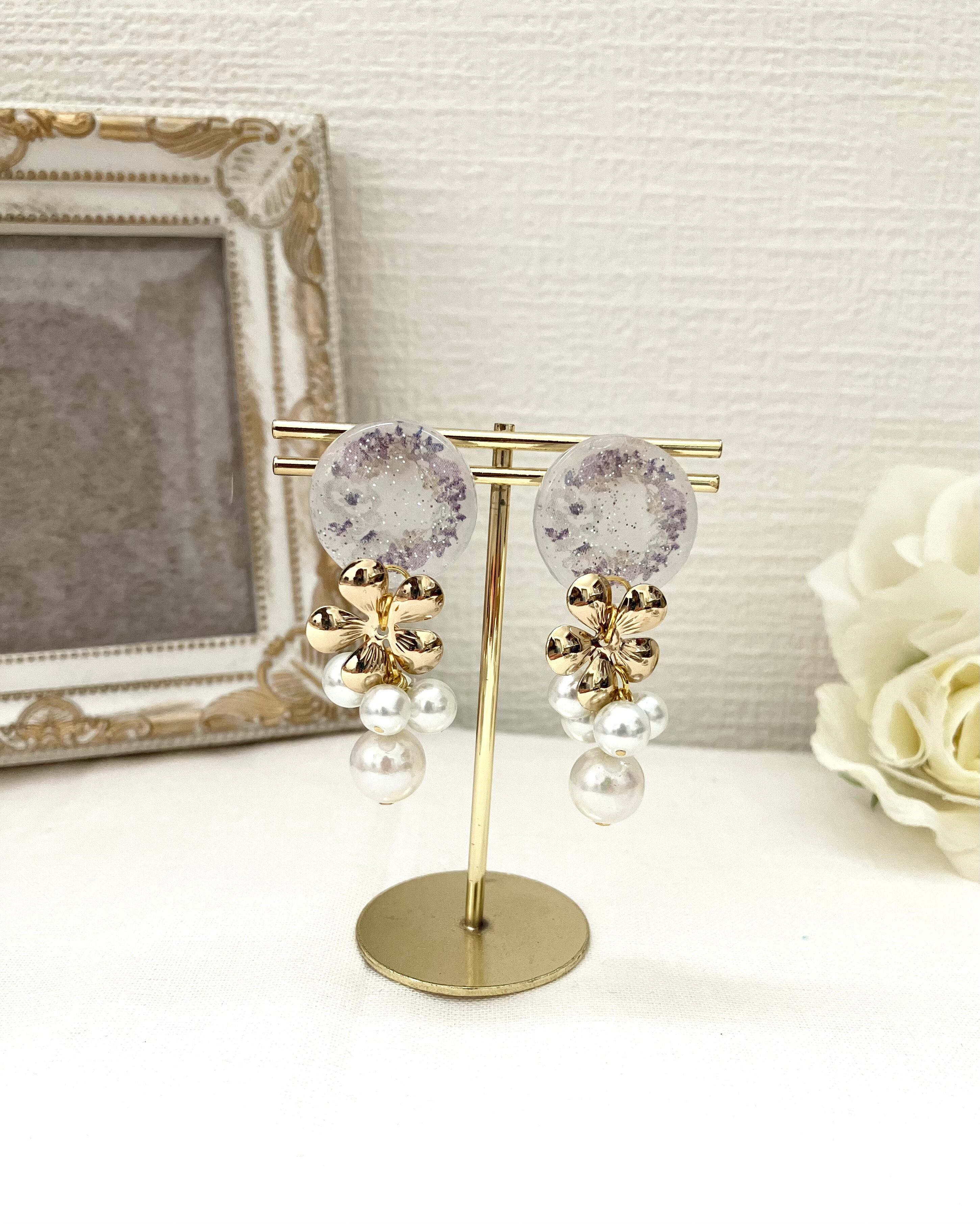 ゴールドのお花とシャラシャラパールを合わせて上品に仕上げました。